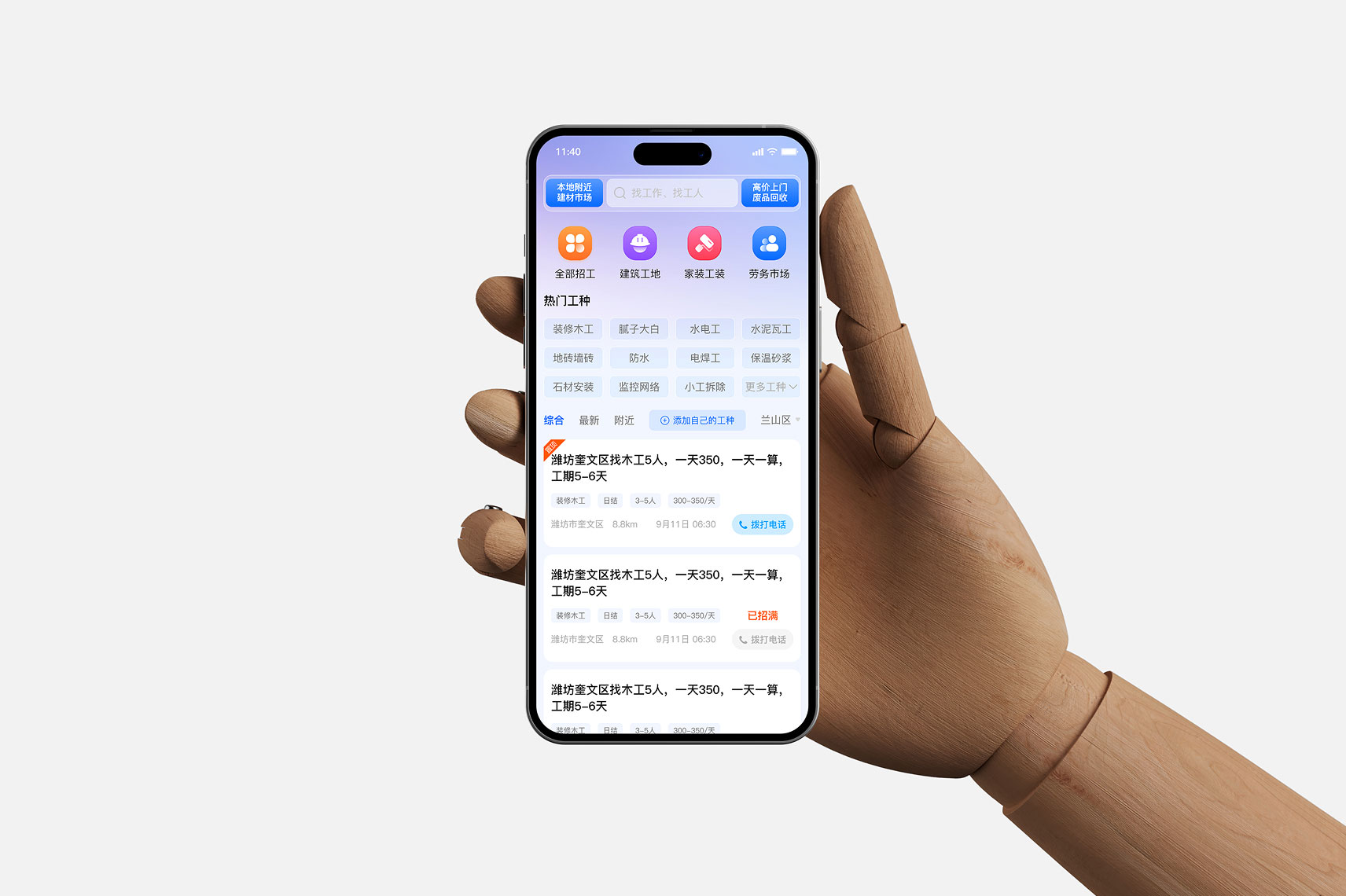 专为农民工 务工人员、自由职业者、打工挣钱量身打造,聚焦零工、临时工、日结工等灵活用工场景;同时为企业、个体商户、家庭雇主提供高效找工作入口,快速匹配短期用工需求。
